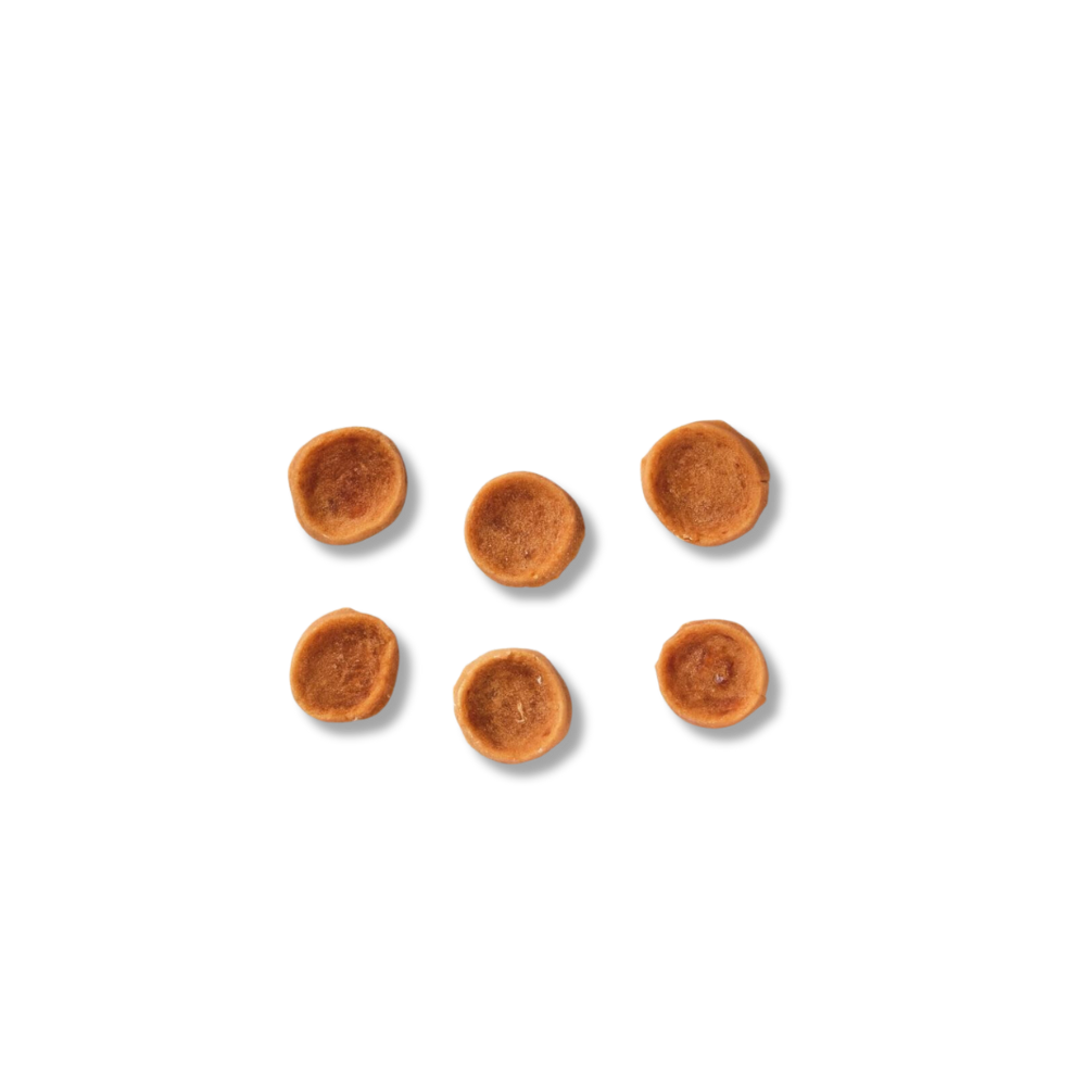 - Harina de Patata: Hemos agregado harina de patata para lograr la textura perfecta en cada moneda. Con un exterior crujiente y un interior tierno, estas monedas de bacalao son un placer para el paladar de tu perro.
